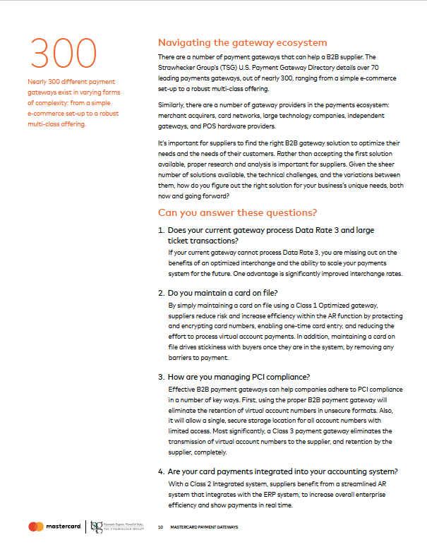 Suppliers need to close the gap that exists between the past and the present to provide for the future. Suppliers can do so by adapting payment technology to the needs of their customers and accommodate new payment methods. A payment gateway that specializes in B2B payments is a key component of both improving the collection process and preparing for the future.